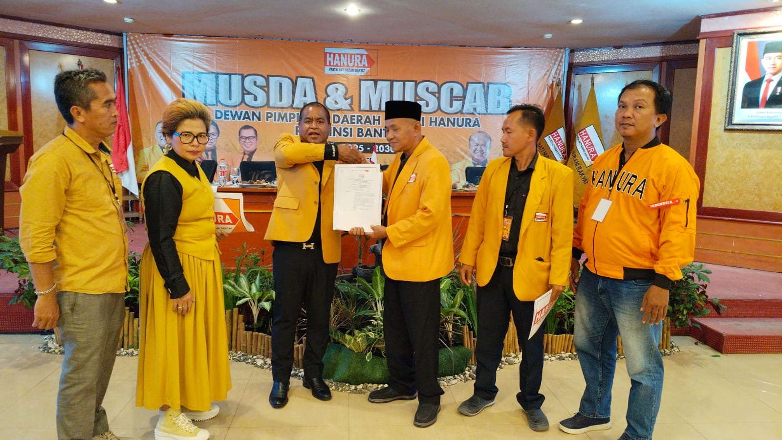 Fajarbanten.co.id – Dewan Pimpinan Daerah (DPD) Partai Hati Nurani Rakyat (Hanura) Provinsi Banten resmi menetapkan Agus Fahrudin sebagai Ketua DPD usai menggelar Musda dan Muscab di salah satu hotel di Kota Serang, Sabtu (13/12/2025) siang.
