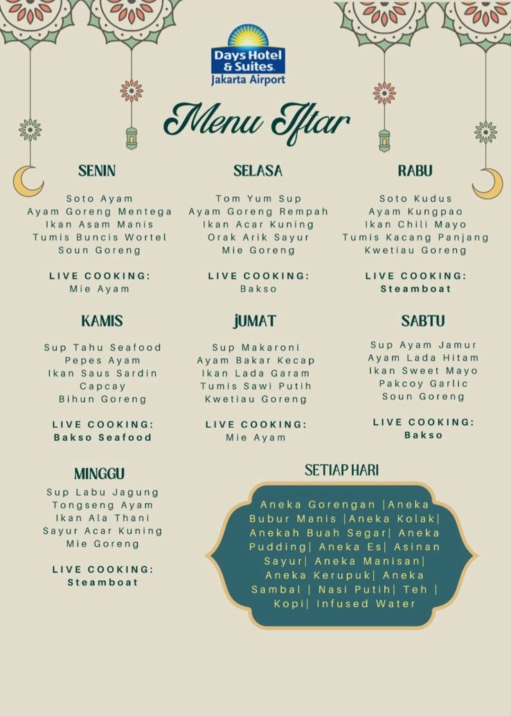 Dengan perpaduan cita rasa, hiburan, dan atmosfer yang menyentuh, Days Hotel & Suites by Wyndham Jakarta Airport menghadirkan lebih dari sekadar santap berbuka—melainkan pengalaman Ramadan yang utuh dan tak terlupakan.