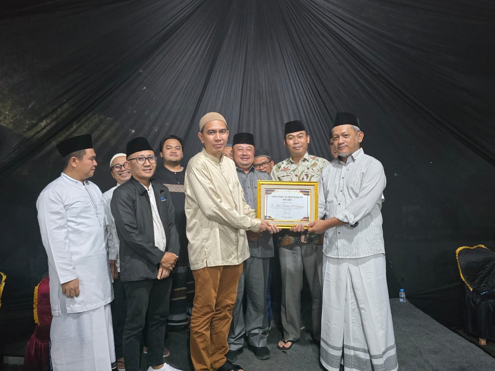 Momen penyerahan penghargaan bertepatan dengan agenda Tahlilan 40 Hari wafatnya almarhum, yang digelar di kediaman keluarga. Suasana khidmat menyelimuti acara tersebut, yang dihadiri ratusan jamaah dari berbagai unsur.