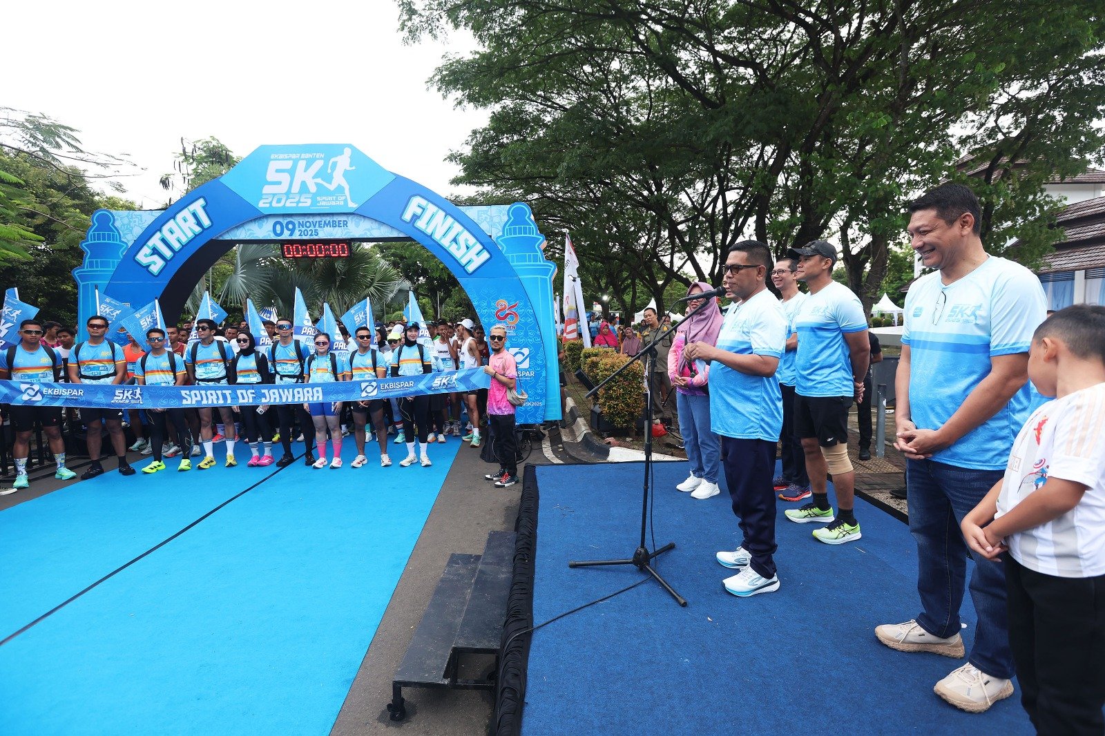 Fajarbanten.co.id – Gubernur Banten Andra Soni melepas peserta Lomba Lari Ekbispar Banten 5K 2025 di Kawasan Pusat Pemerintah Provinsi Banten (KP3B), Curug, Kota Serang, Minggu (9/11/2025). Lomba lari sejauh 5 kilometer itu diikuti sekitar 1.200 peserta, termasuk Wakil Wali Kota Serang Nur Agis Aulia dan Dangrup 1 Kopassus Brigjen Raden Nashrul Fathurrohman.