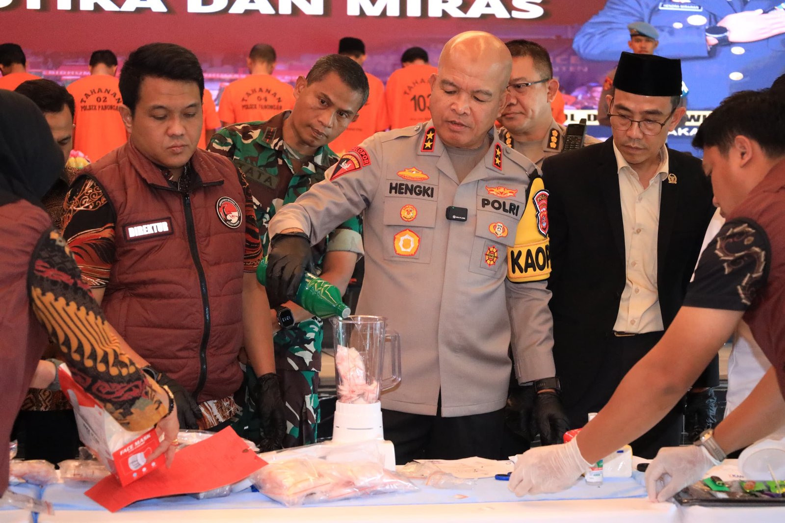 Dalam kesempatannya, Dirresnarkoba Polda Banten Kombes Pol Wiwin Setiawan menyampaikan bahwa selama tahun 2025 pihaknya berhasil meringkus berbagai barang bukti narkotika dan miras. “Selama tahun 2025, Polda Banten telah mengumpulkan barang bukti yang hari ini dimusnahkan, antara lain sabu-sabu seberat 1.249 gram, ganja seberat 12.197 gram, serta berbagai jenis minuman keras sebanyak 8.617 botol. Pemusnahan ini dilakukan sebagai bentuk transparansi dalam pengelolaan barang bukti sekaligus sebagai upaya tegas Polda Banten dalam memberantas peredaran narkoba dan minuman keras di wilayah hukum Polda Banten,” ujarnya.